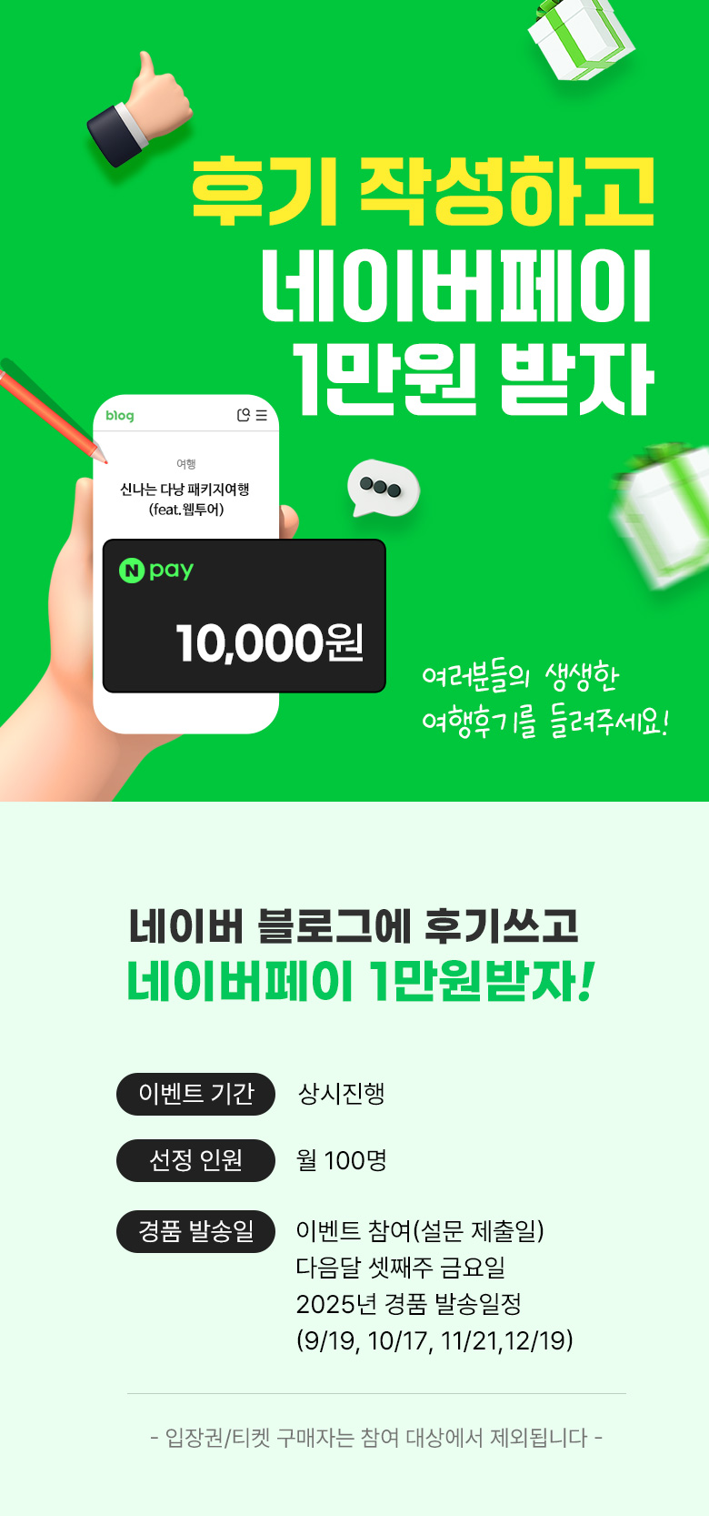 네이버는 통신판매중개자로서, 상품 및 서비스의 이행은 웹투어의 책임하에 운영되고 있으며, 웹투어의 약관을 따릅니다.