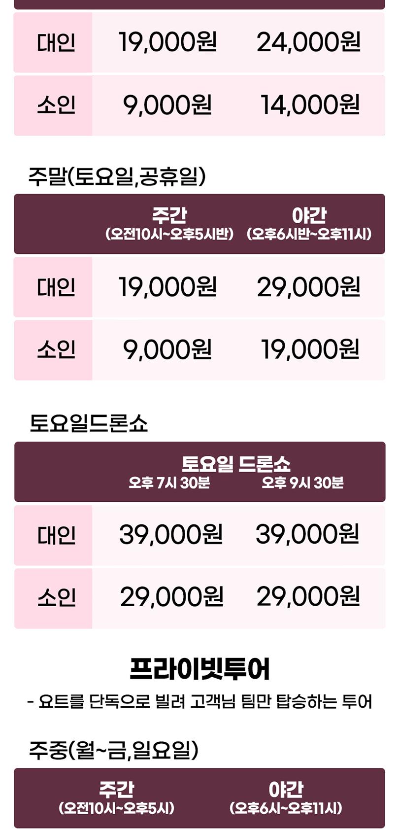 * 주중 : 월~금,일요일 / 주말 : 토요일&공휴일