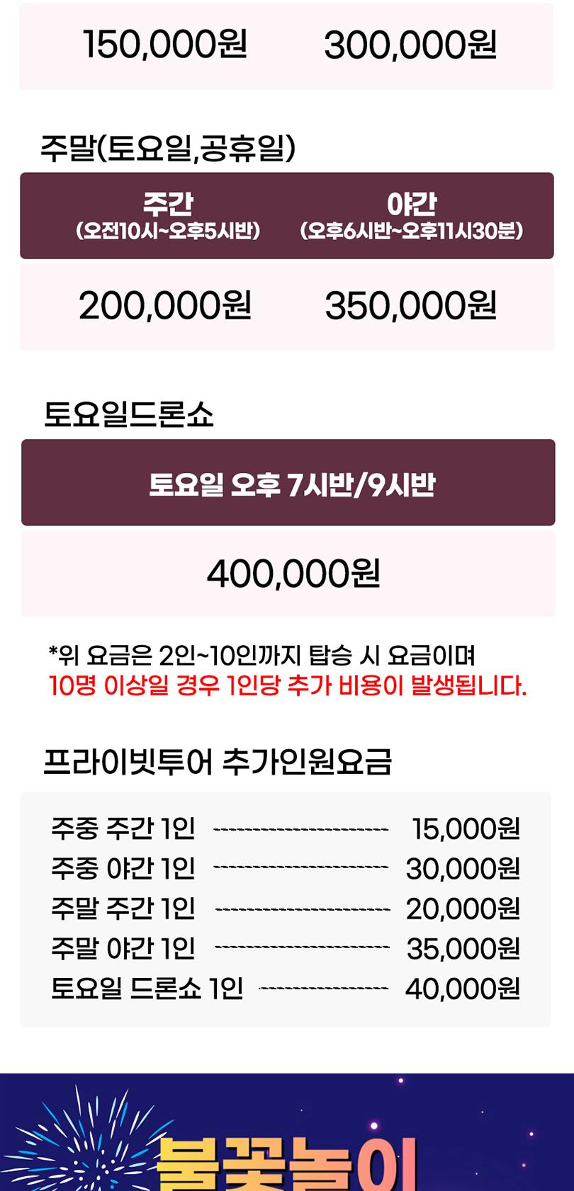 * 프라이빗 투어는 기본 최대 10명까지 이용가능 하며, 인원 초과시 추가비용이 있습니다.