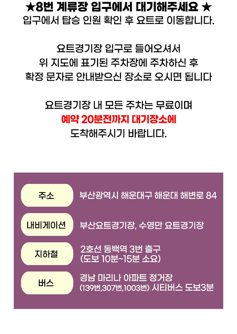 * 탑승 시간까지 도착하지 못하신다면 노쇼로 인해 환불이나 탑승이 불가능합니다.