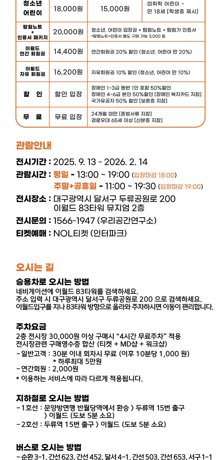 - 무료입장 : 36개월 미만 증빙서류 지참 시 무료입장 적용