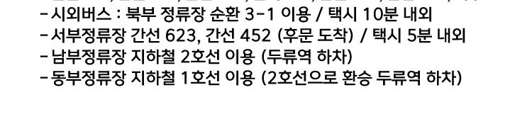 * ※ 주말에는 차가 많이 밀리기 때문에 지하철을 이용하시는 것이 좋습니다.