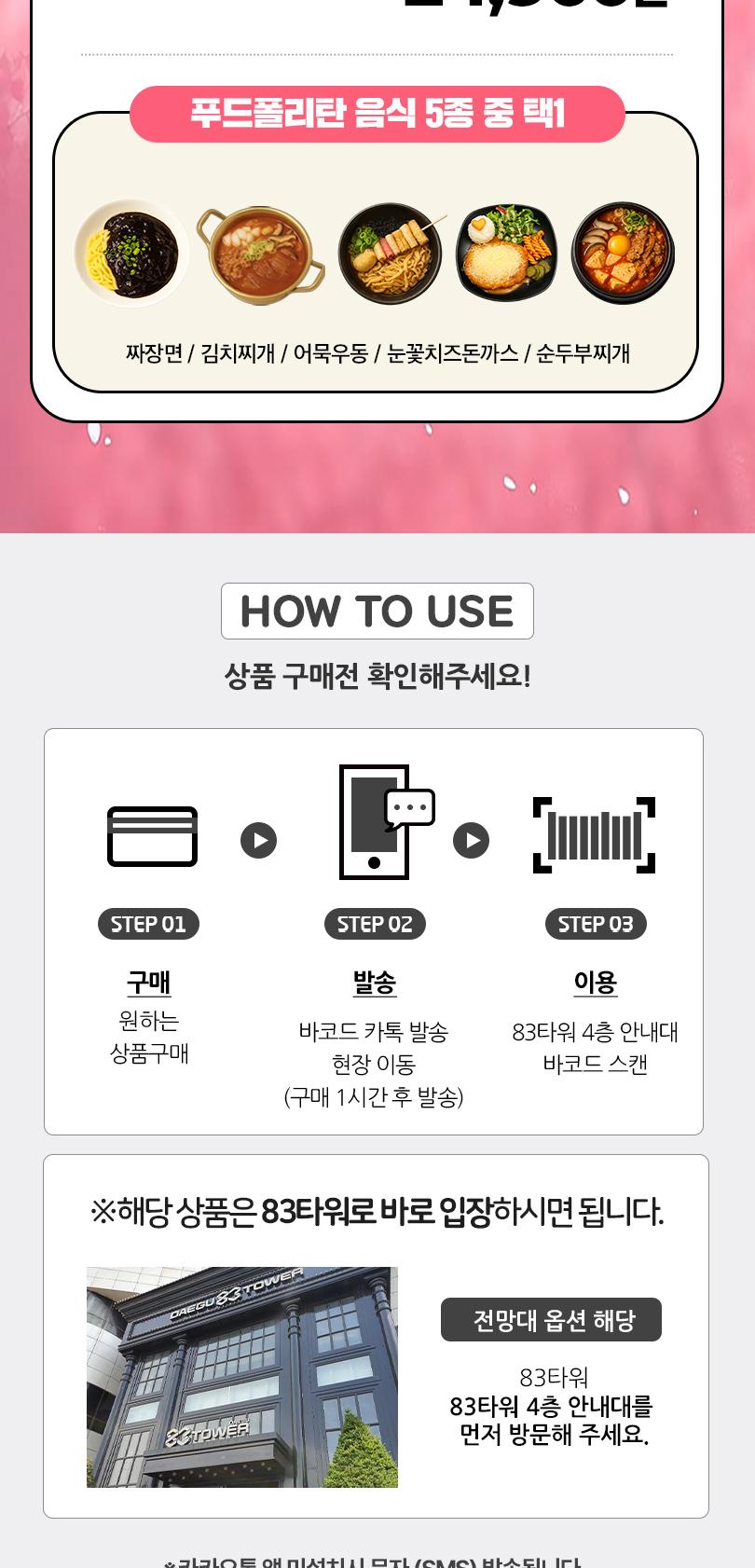 * 83타워 고객: 3만원 이상 구매 시 4시간 무료