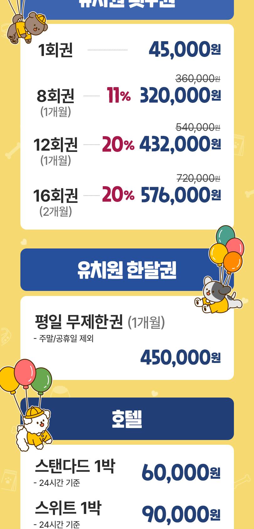 * 반려견 건강 상태는 사전에 반드시 유치원 측에 고지해야 합니다.