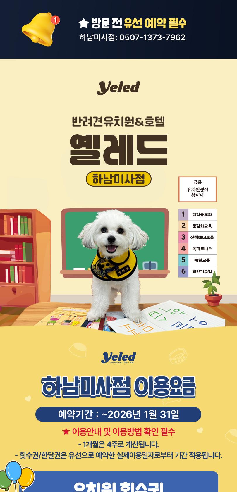 옐레드 하남미사점 애견유치원 애견호텔 이용권