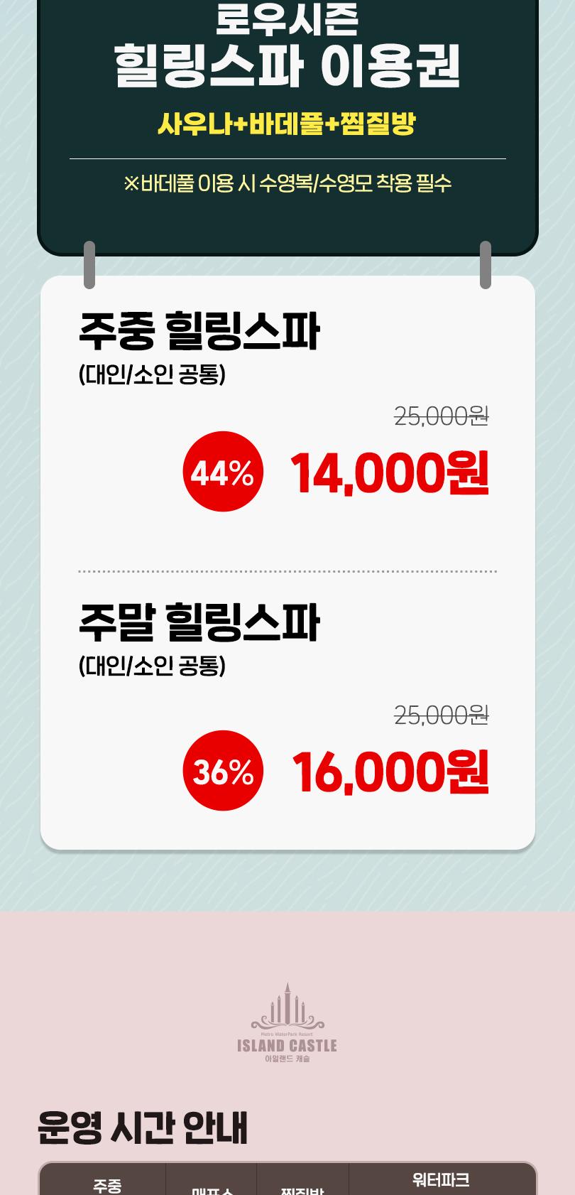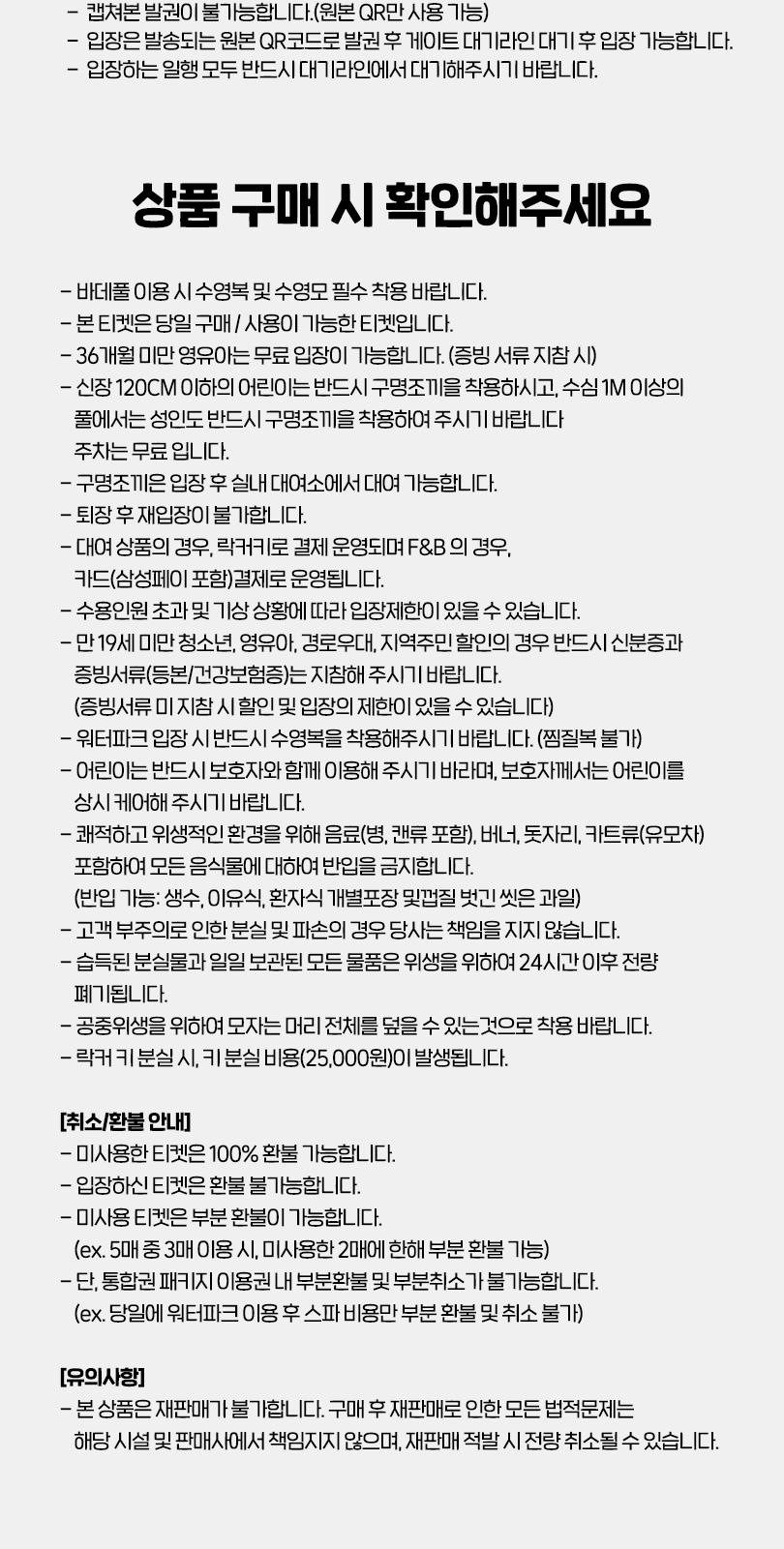 * 워터파크 입장 시 반드시 수영복을 착용해주시기 바랍니다. (찜질복 불가)