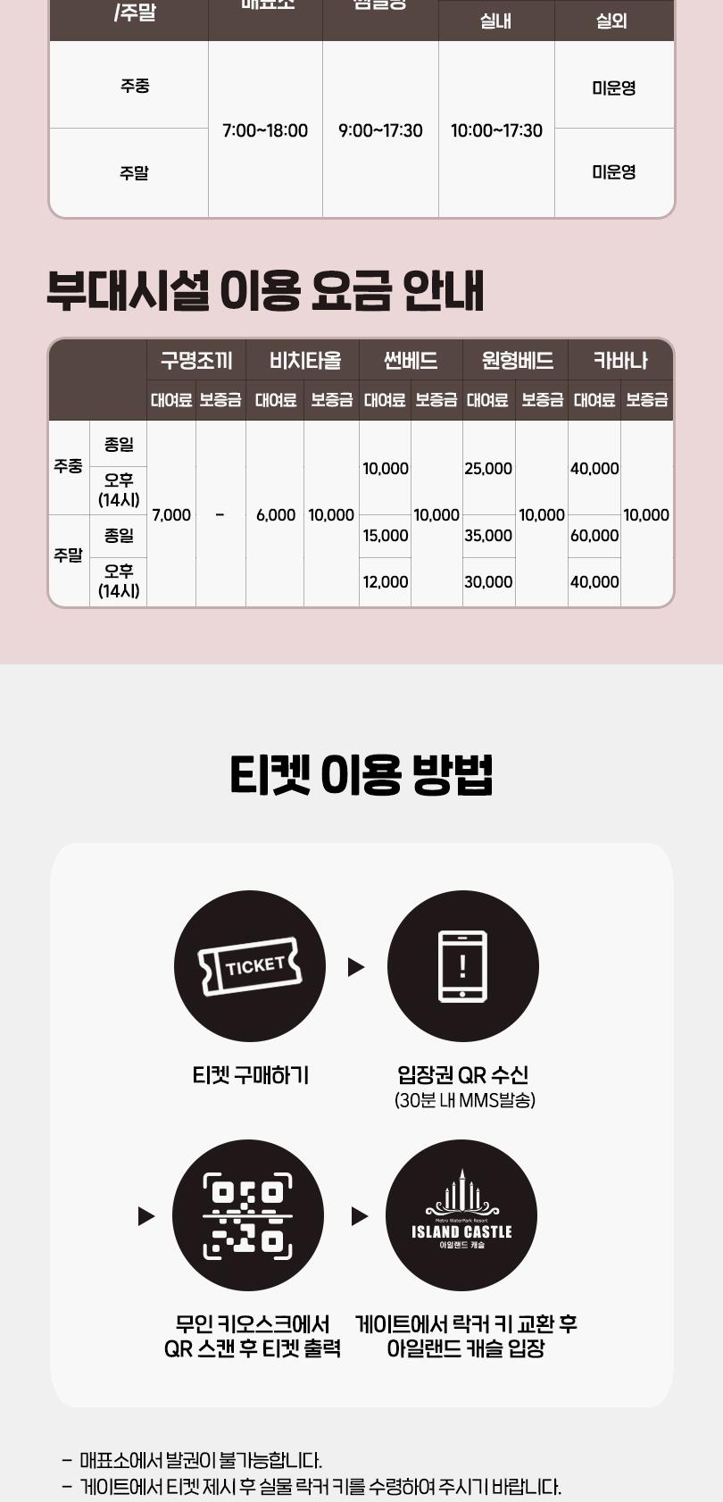 * 성수기 시즌/주말 또는 휴장 및 기상상황에 따라 경우 입장제한이 있을 수 있습니다.