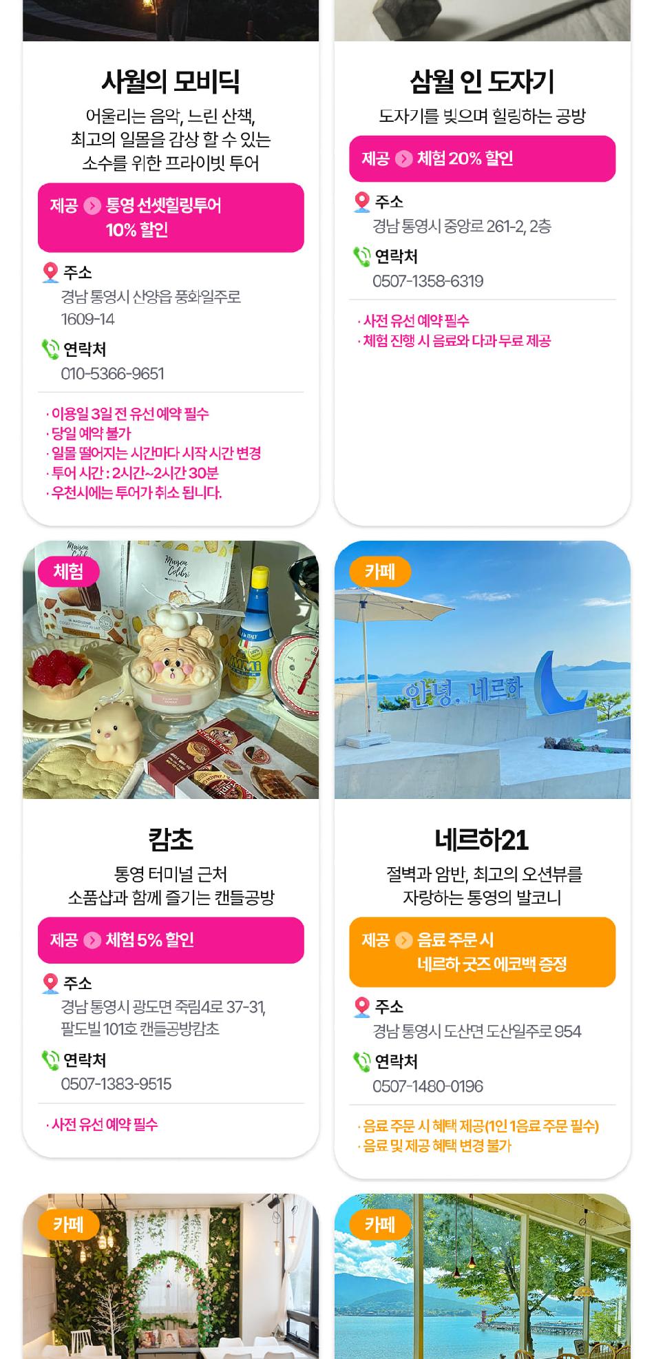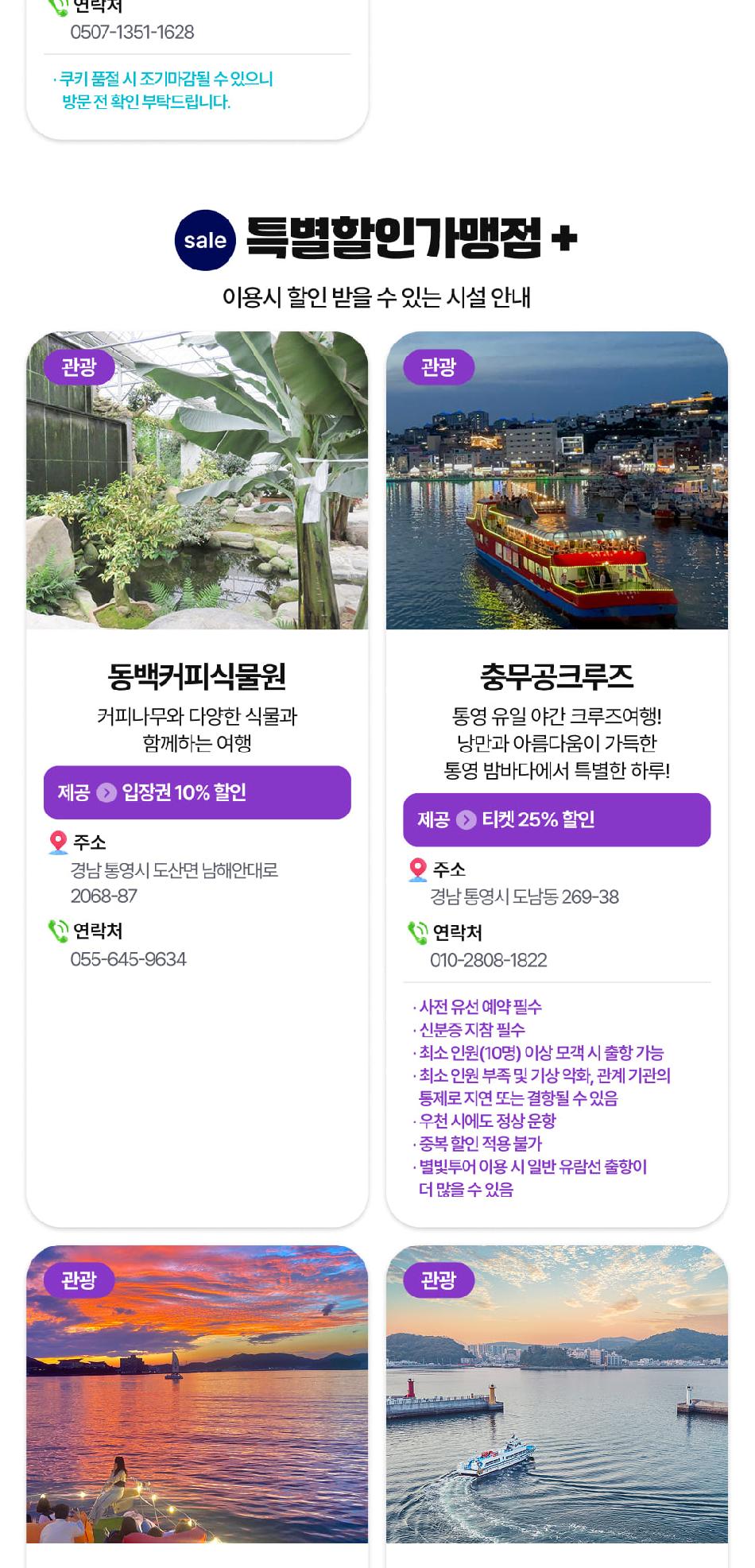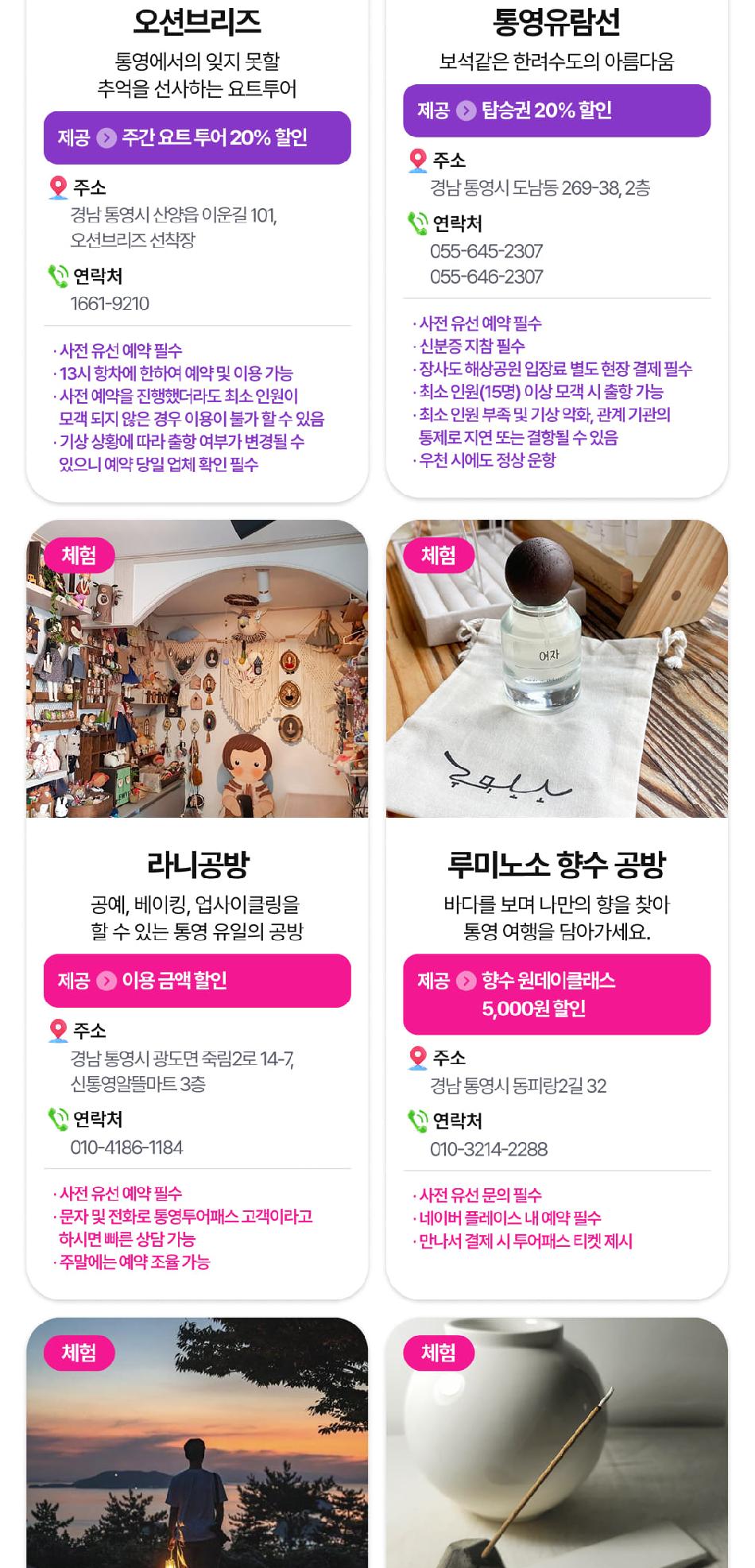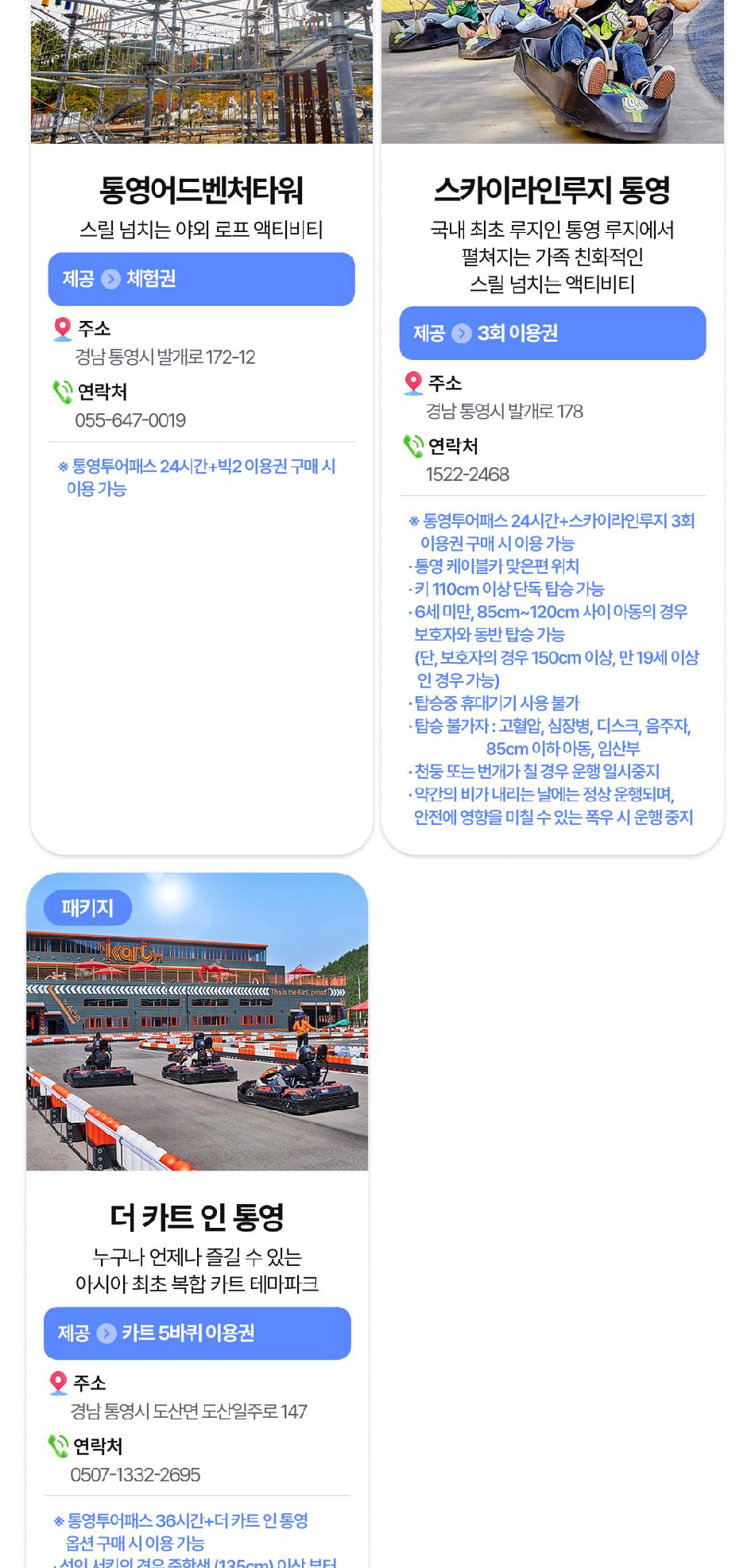 * 이용 가능한 업체 리스트는 구매 후에도 실시간으로 변경 될 수 있으니 모바일 티켓의 ‘투어패스 이용가능 여행지’를 확인 하시어 이용 바랍니다.