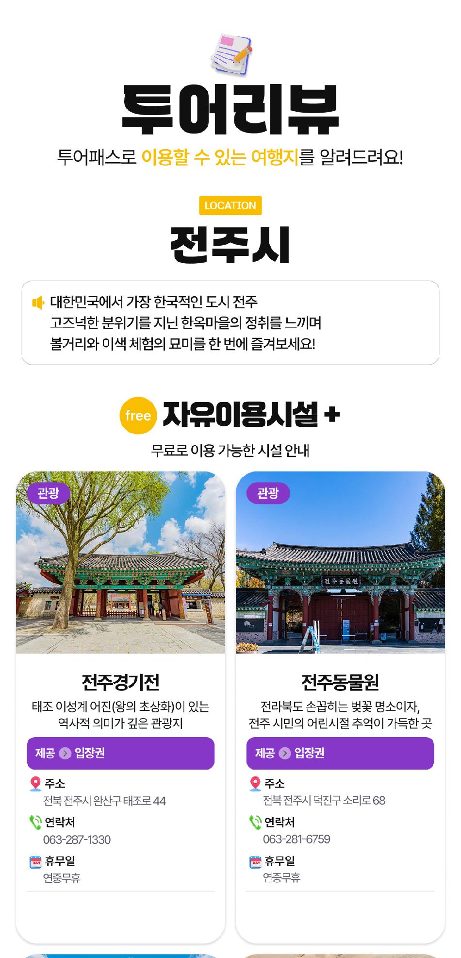 - 투어패스 첫 사용시간 기준으로 사용시간 내 무제한 이용가능합니다.(동일시설 중복이용 불가)