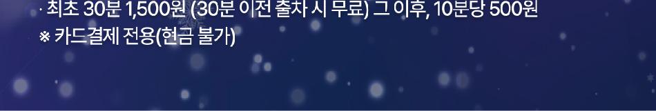 - 최초 30분 1,500원 (30분 이전 출차 시 무료) 그 이후, 10분당 500원