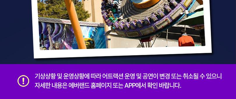 * 파크 이용안내 및 공지사항은 방문전 에버랜드 홈페이지 또는 APP을 통해 확인 부탁드립니다.