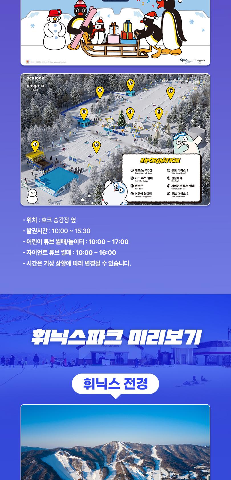 * 모든 시설의 운영 상황은 휘닉스호텔앤드리조트 공식홈페이지에서갖아 빠르게 확인 할수 있습니다.