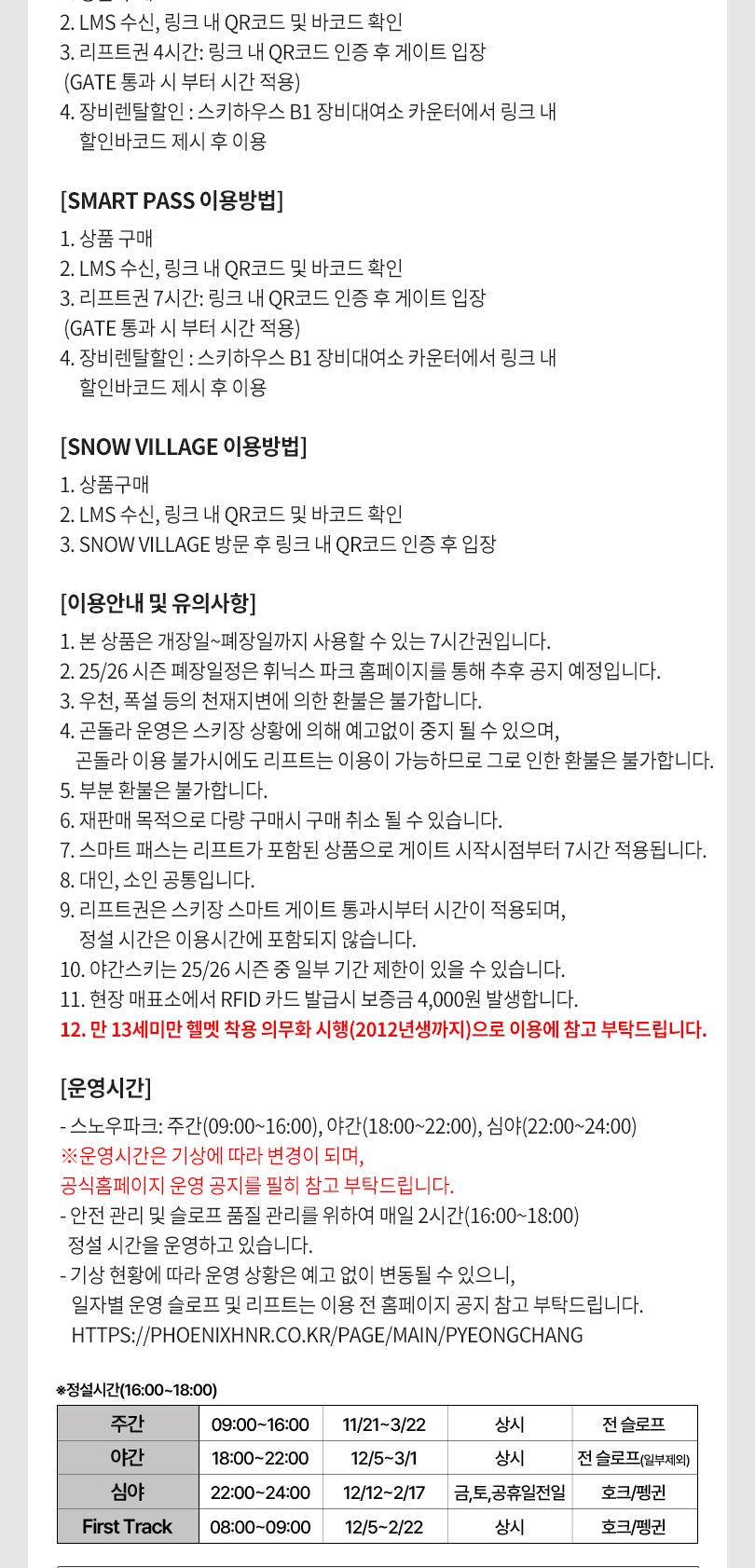 * 3. 리프트권 4시간: 링크 내 QR코드 인증 후 게이트 입장