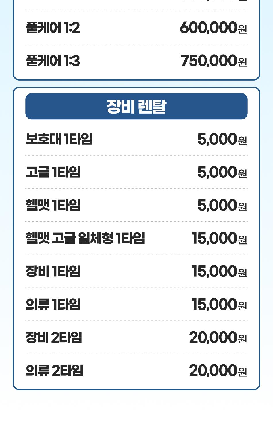 * 보호대, 고글, 헬멧 렌탈가능 / 장갑, 모자 구매 가능합니다.