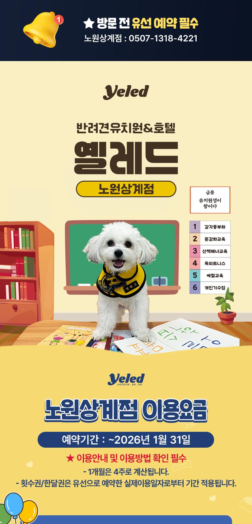 * 2. 옐레드 노원상계점(0507-1318-4221)으로 유선 예약