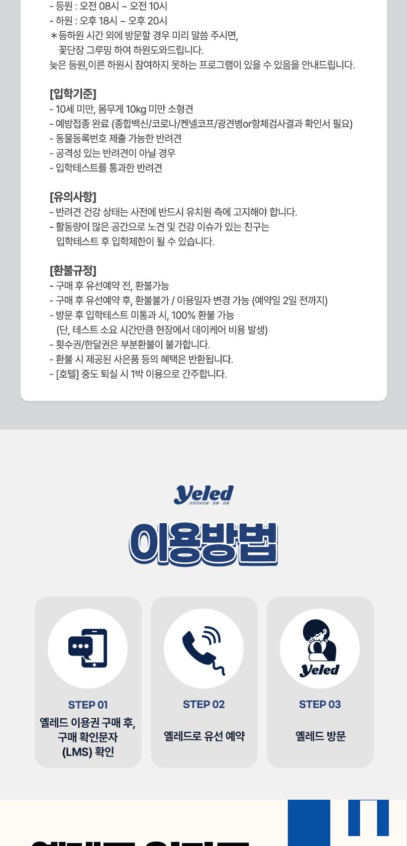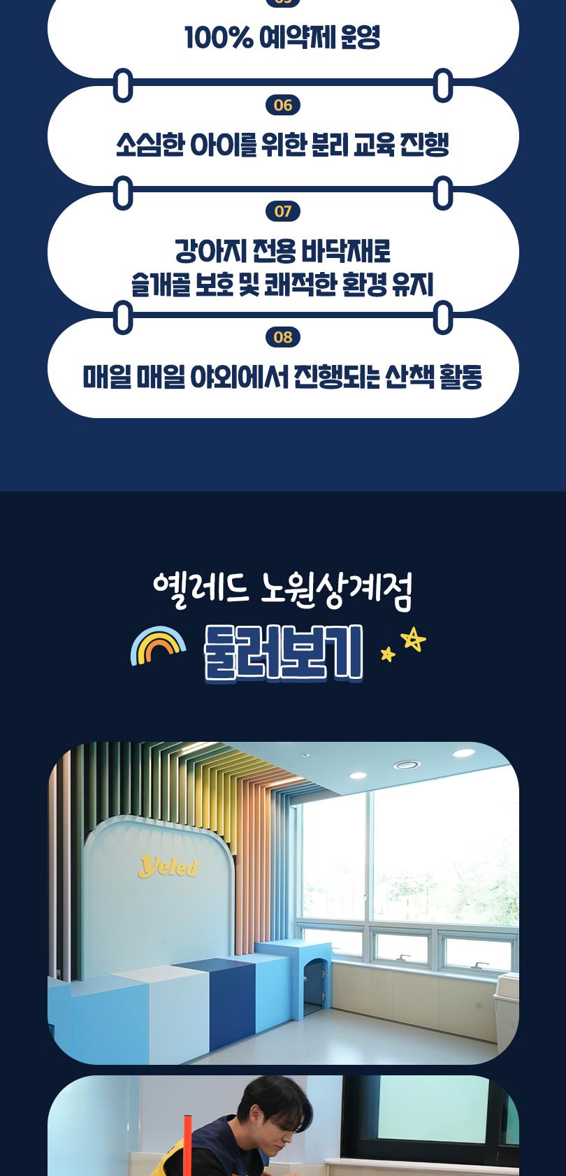 * 활동량이 많은 공간으로 노견 및 건강 이슈가 있는 친구는 입학테스트 후 입학제한이 될 수 있습니다.