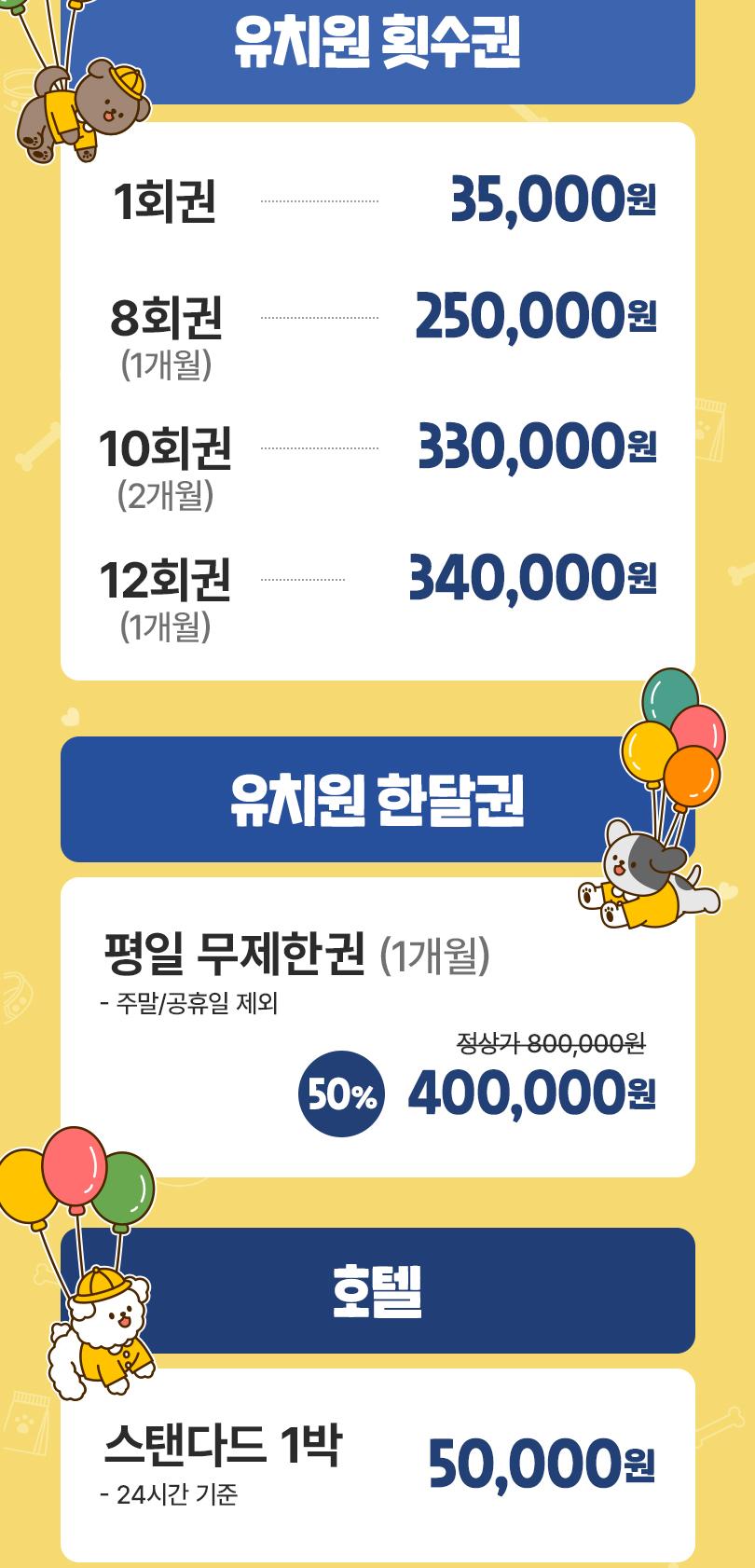 * 반려견 건강 상태는 사전에 반드시 유치원 측에 고지해야 합니다.