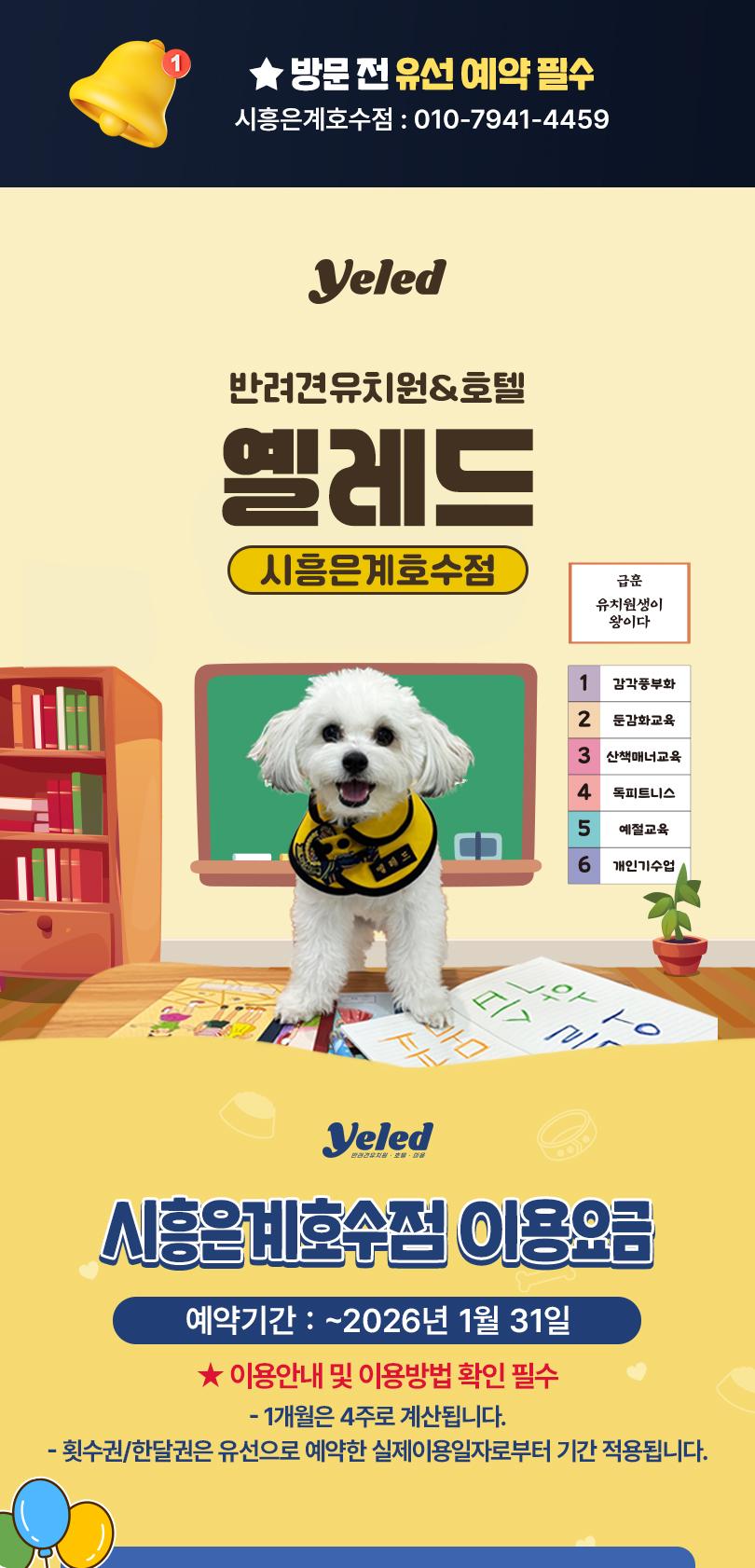 옐레드 시흥은계호수점 애견유치원 애견호텔 이용권