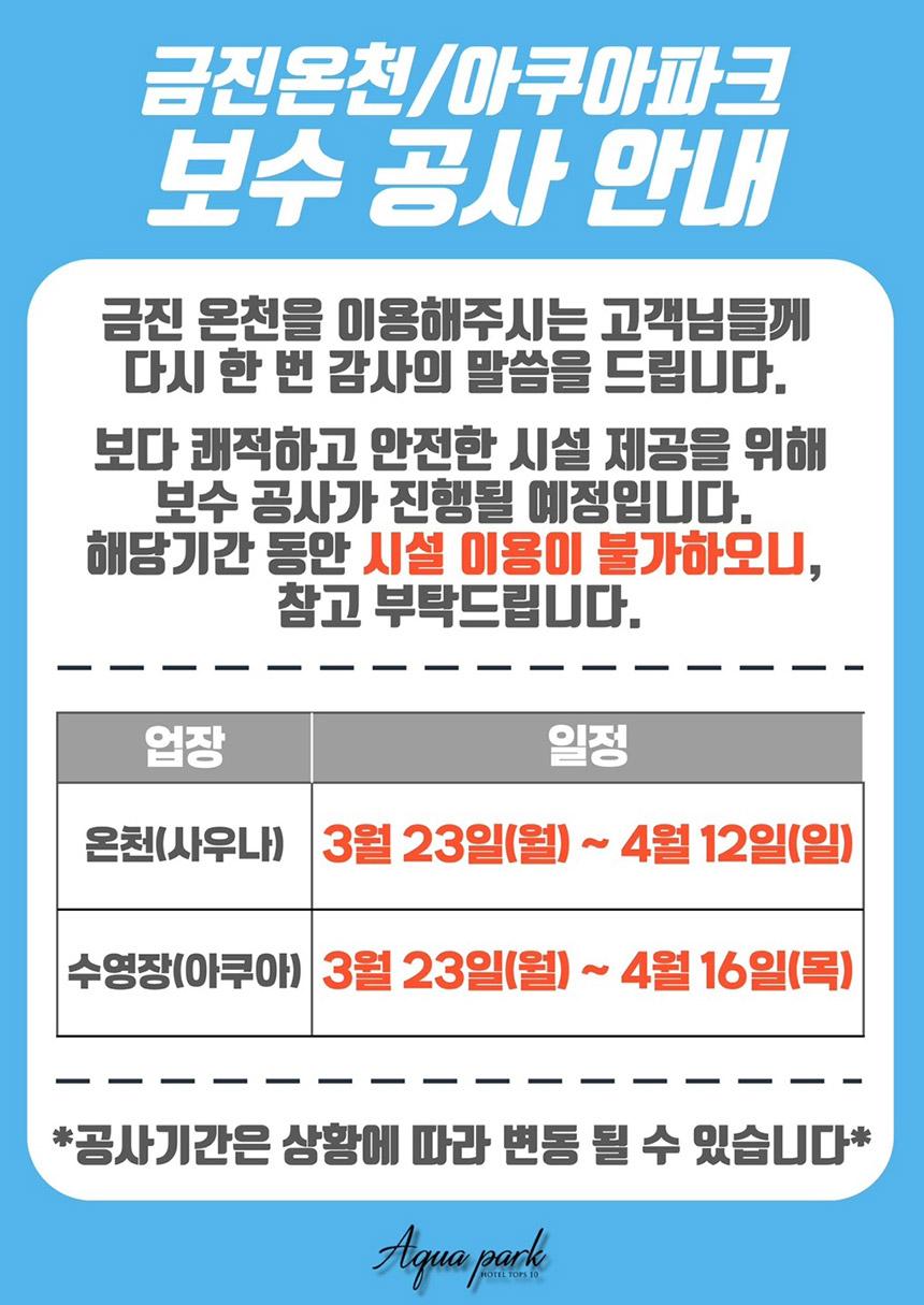 - [금진온천 및 아쿠아파크 휴장일 안내]