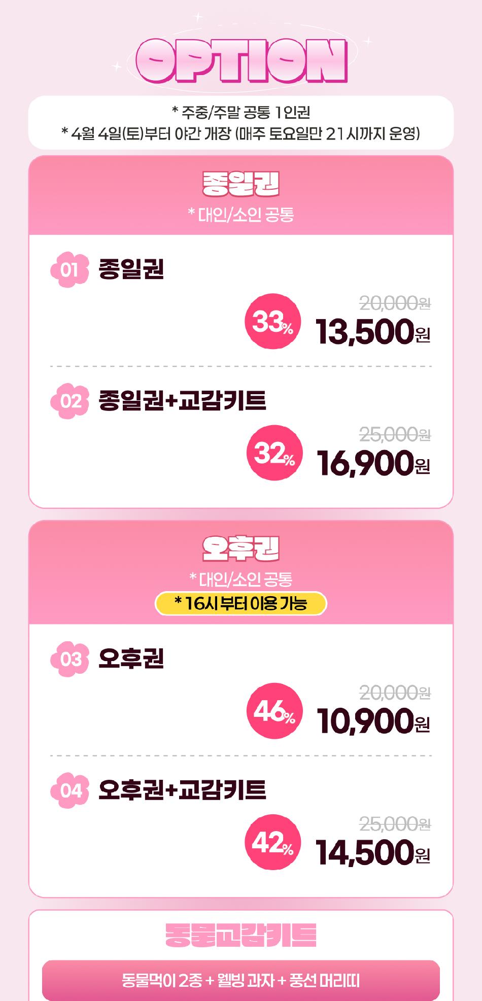 * 야간개장: 토요일만 21:00까지 운영(4/4부터)