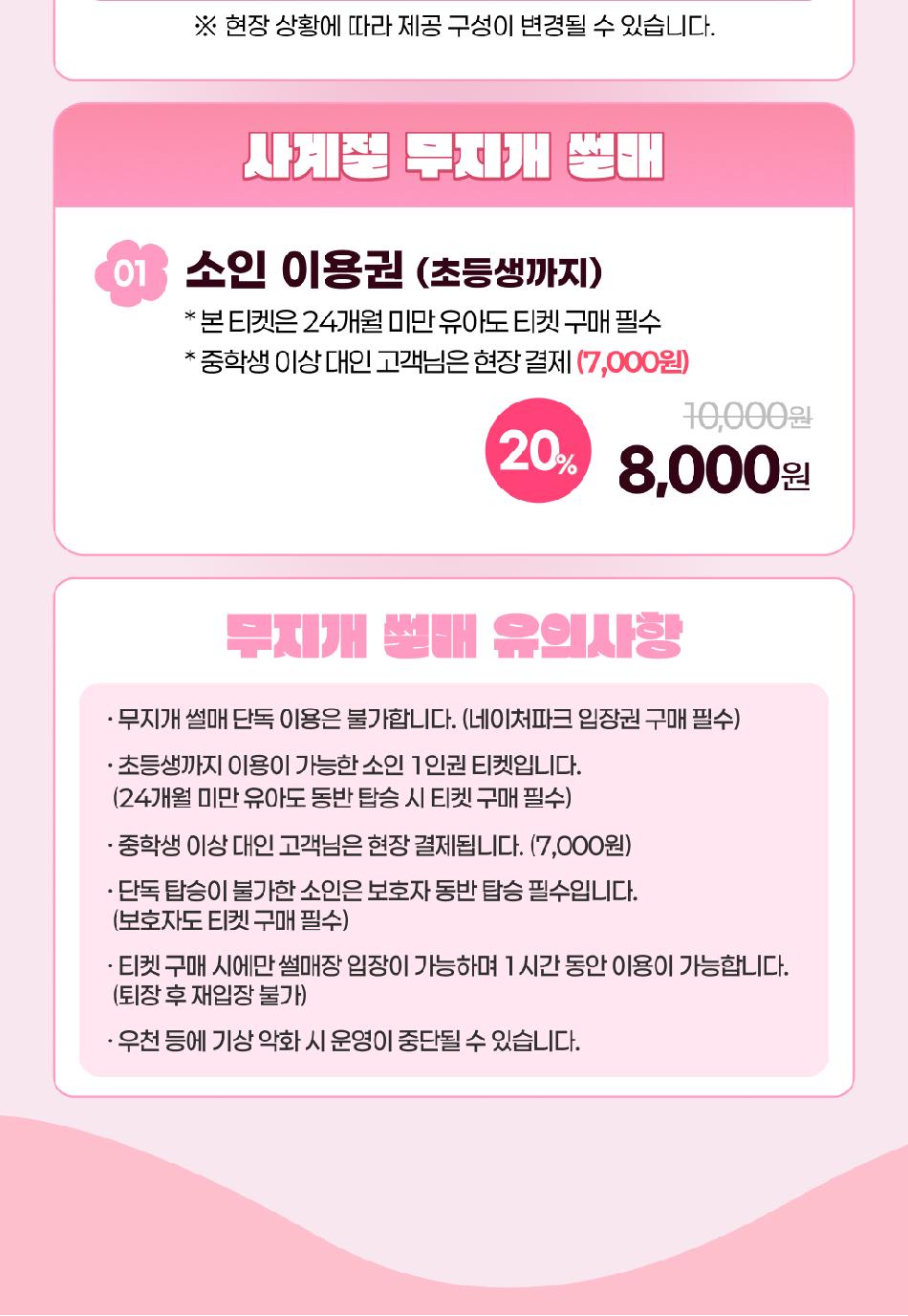 * 무지개 썰매 단독 이용은 불가합니다.(네이처파크 입장권 구매 필수)