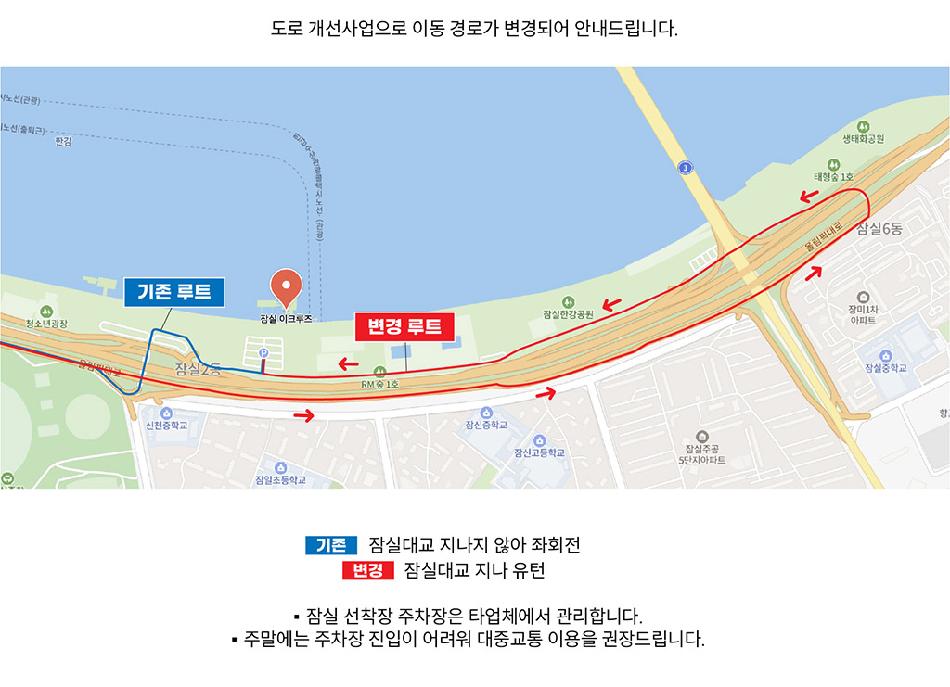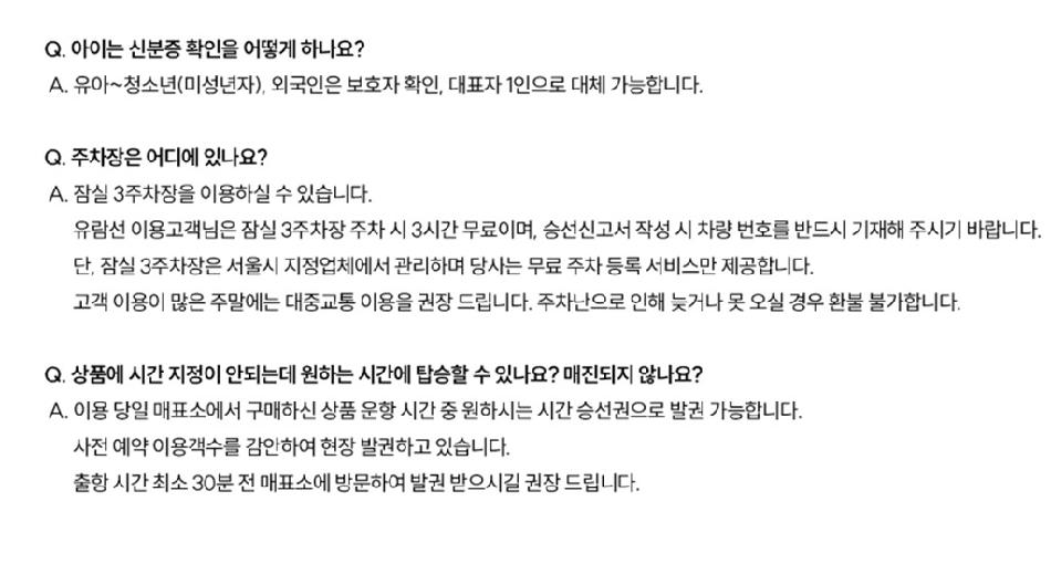 * 주차확인은 매표소에서 승선신고서 내 차량번호 기재 시, 이용당일 3시간 무료입니다. (`잠실 한강공원 3주차장`만 가능)