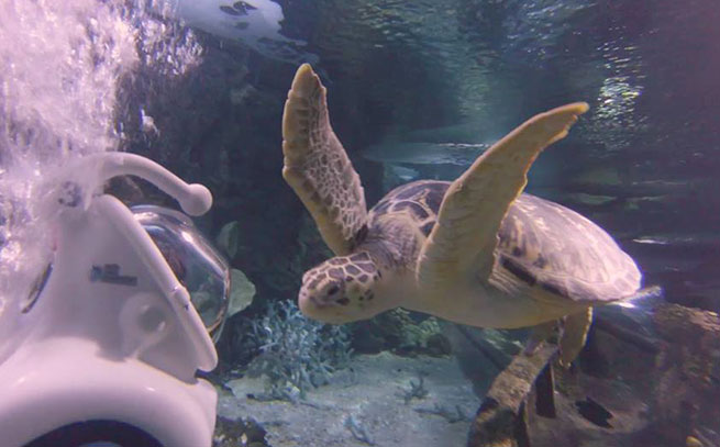 언더워터 투어: 괌 섬의 따뜻한 바닷속 안을 색다른 방식으로 즐겨보고 싶다면 서브마린 투어를 이용해보자. 서브마린 투어는 잠수함을 타고 안전하게 바닷속을 누리면서 산호초 및 해양 생물을 구경할 수 있는 투어 프로그램이다. 보다 직접적인 해양 체험을 원한다면 언더워터 월드에서 운영하는 시트렉 프로그램이 제격이다. 시트렉 프로그램에서는 공기를 공급하는 헬멧을 착용 하고 실제 바다와 다름 없는 대형 아쿠아리움 속을 거닐 수 있다.