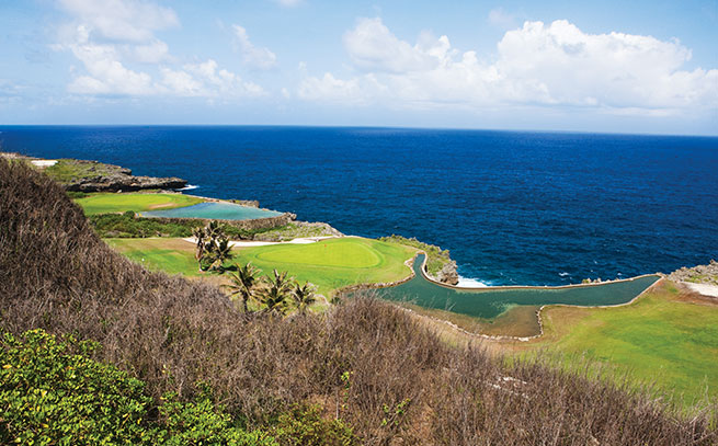 yards로 다소 전장이 짧은 편이나 2개 홀에서 바다를 넘겨야