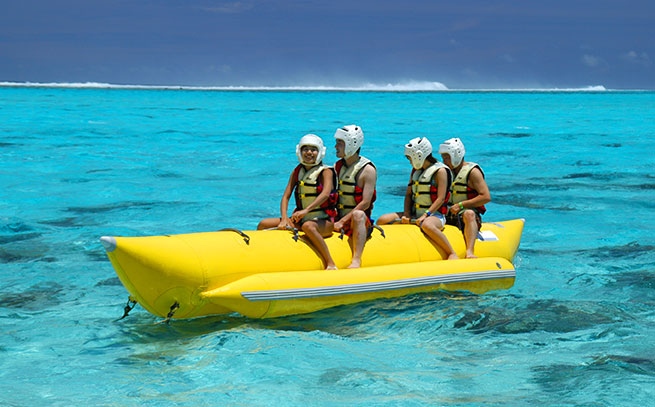 남태평양의 뜨거운 태양아래서 연인 또는 친구들과 함께 즐기는 신나는 제트스키, 잔잔한 바다위를 신나게 달려 보십시오. 사이판이 해양스포츠의 천국임을 다시한번 느낄 수 있습니다. 또한 여럿이 함께 즐기는 바나나보트 또는 한국에서는 쉽게 접하지 못했던 물위에서의 즐거움이 있습니다.