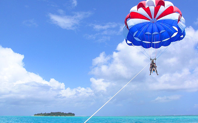 스피드보트가 페러세일링용 낙하산에 줄을 이어 바다에서 끌고 다닙니다. 매달리는 사람이 떠오르는 높이는 보통 15-30미터 정도이고 공중체류 시간은 약15분 정도입니다. 고도 30미터이상의 하늘에서 직접 날아올라 바라보는 사이판은 비행기를 타고 보는 사이판과는 또 다른 희열을 줍니다.
