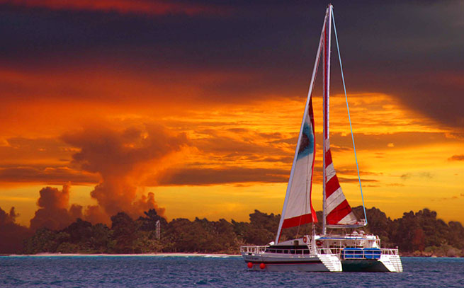 사이판의 절경중의 하나가 바로 석양(선셋)입니다. 남태평양의 붉게 물든 바다위에 아름다운 보트 한대! 그 보트위에서 노을을 바라보며 저녁 식사도 즐기고, 열대음악과 신나는 댄스, 맥주와 음료는 마음껏 즐기세요!! 원하는 손님은 승선시 선장 및 스탭들과 사진을 찍고 하선할 때 찾을 수도 있습니다.